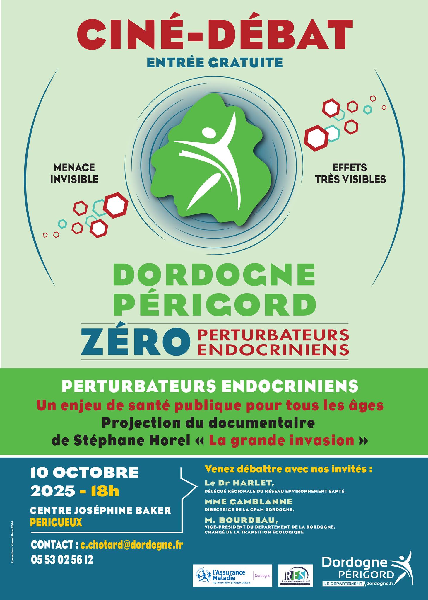 🗣🎬 Dans le cadre de sa journée consacrée à la signature de son plan santé environnement, Dordogne-Périgord, le Département vous propose une soirée ciné-débat vendredi 10 octobre à 18h au Centre départemental Joséphine Baker à Périgueux consacrée à la thématique suivante : « perturbateurs endocriniens, un enjeu de santé publique pour…
