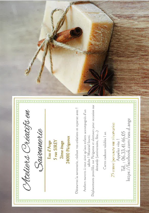 Venez découvrir la savonnerie lors d’un atelier créatif. Confectionnez vos propres savons à partir d’un bloc de savon bio enrichi à l’aloe vera, choisissez vos parfums parmi plus de 40 huiles essentielles, huile de coco, huile d’amande douce, lait d’ânesse, couleurs, formes et repartez avec vos créations 🙂 Les ateliers…