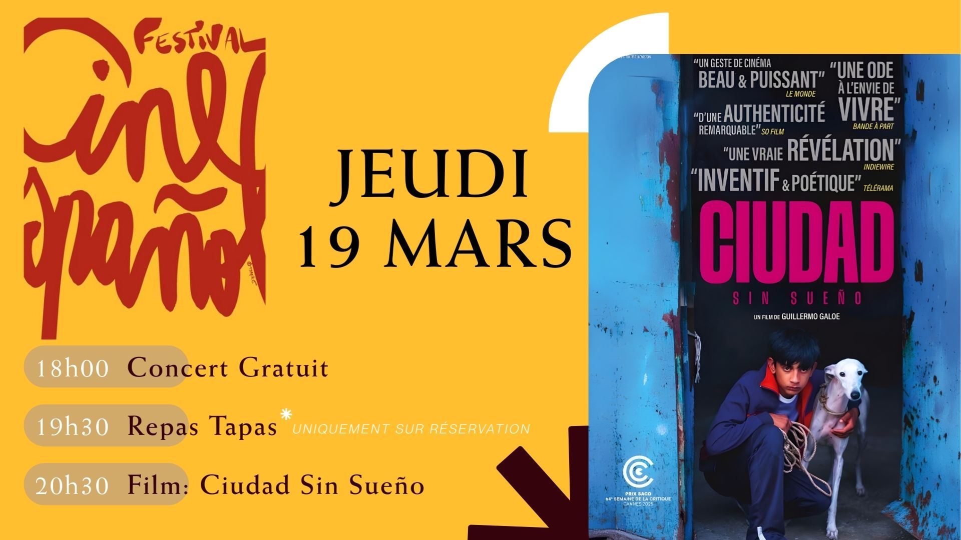 Plongez dans une soirée aux couleurs de l’Espagne, entre musique, saveurs et cinéma. À 18H00 – Concert gratuit Laissez-vous porter par l’ambiance musicale pour ouvrir la soirée dans la convivialité. 19H30 – Repas tapas Prolongez l’expérience avec un repas tapas aux accents espagnols. Repas uniquement sur réservation à l’accueil de…