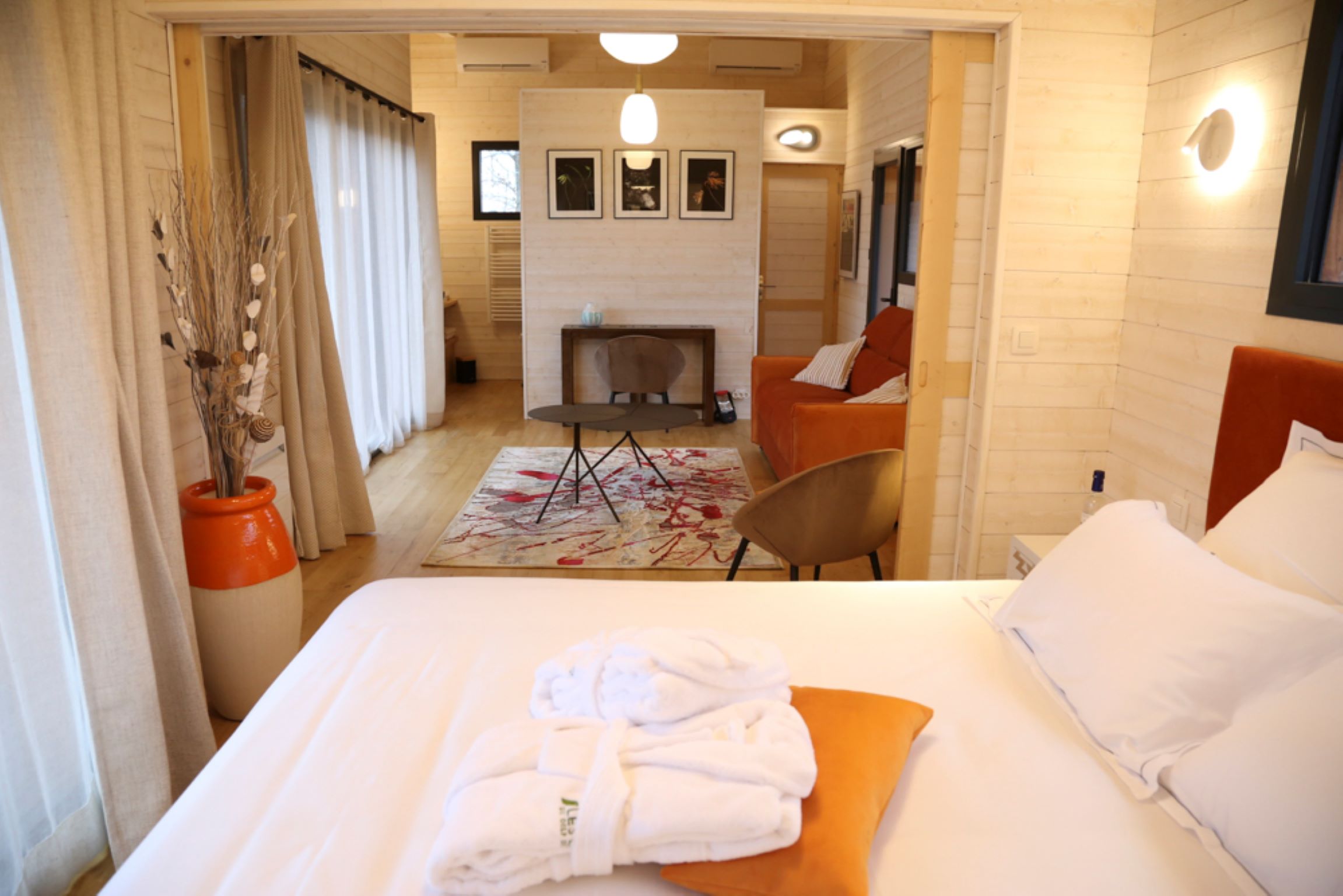 Tous sont équipés d'une terrasse en bois et d’un jacuzzi privatif.