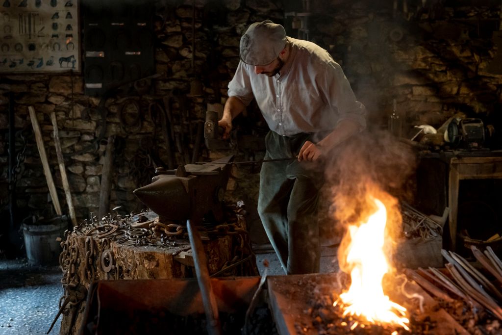 Tandis que des animateurs font revivre airs et légendes d’autrefois, les artisans s’activent : le coutelier fabrique des couteaux à manche de noyer, le potier façonne pichets, vases et jarres.