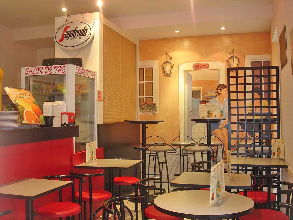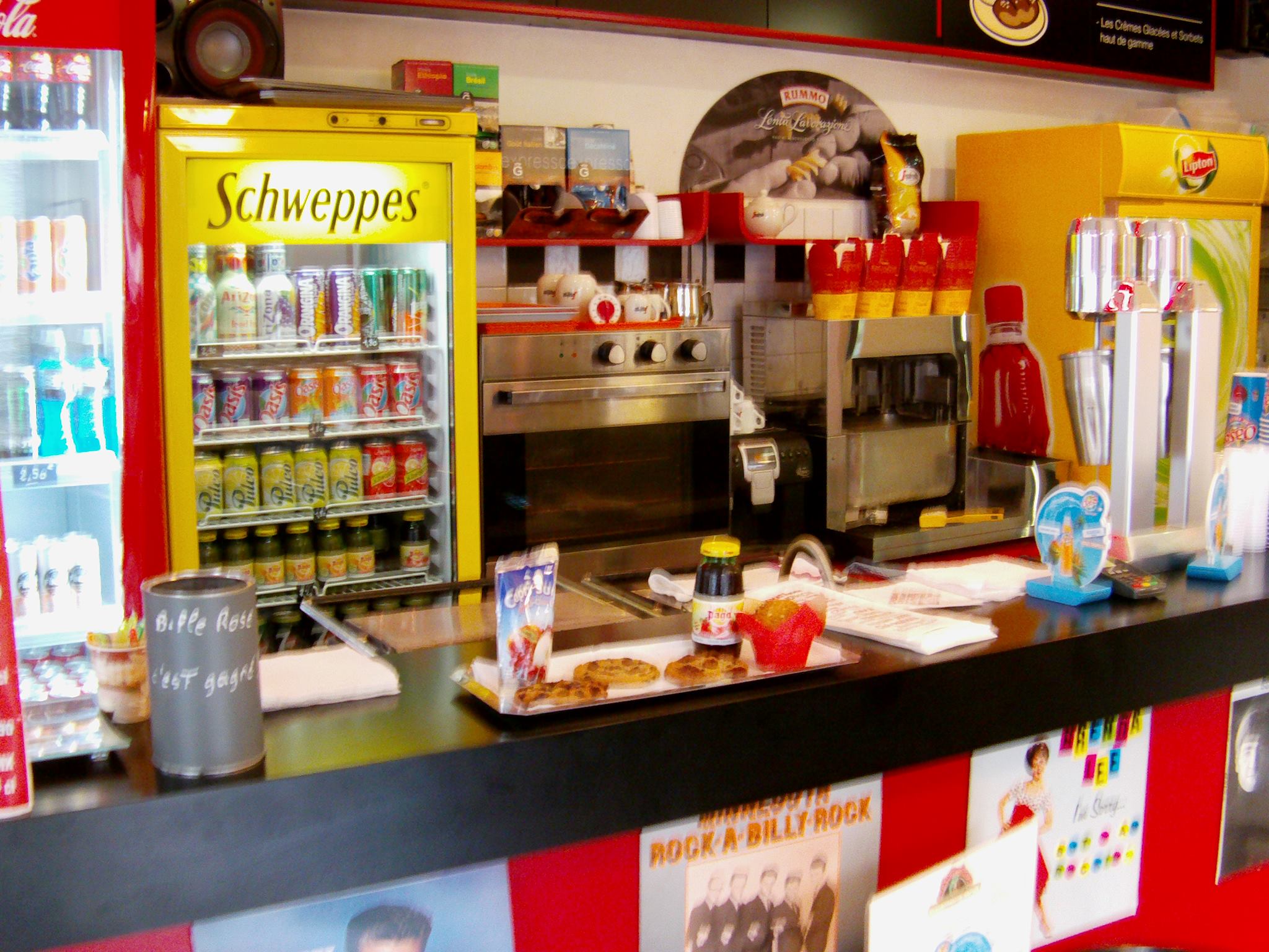 Restauration rapide avec paninis, pâtes italiennes de qualité supérieure, cafés, glaces, pâtisseries, bubble tea..